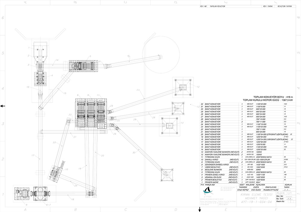 Tesisin kapasitesi 500 ton/sa‘dır. Tesisin kuruluş dizaynı asfalt, beton, PMT tesislerine istenilen ebatta ürün temini edebilmektedir.